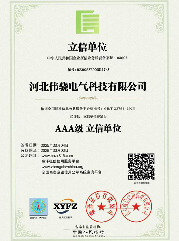 Hebei Weixiao Electrical Technology Co., Ltd. была основана в июне 2024 года с общими инвестициями в 300 миллионов юаней. Площадь составляет 80 му, а площадь строительства — 45 000 квадратных метров. Он расположен в автономной зоне развития уезда Мэнцюнь Хуэй в городе Цанчжоу, провинция Хэбэй, недалеко от транспортной сети Пекин-Тяньцзинь-Хэбэй, обладая превосходным географическим положением и удобным транспортом.